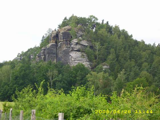 Bequem kann man den Rauenstein ab Weißig erreichen. Beim Anmarsch sieht man die Ostspitze des