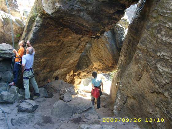 Kletterer beobachten, die an leichten oder auch schweren Kletterwegen ihrem Hobby frönen. Direkt zwischen den Kletterfelsen gibt es sogar eine bequeme Bank. An manchen Stellen fühlt man