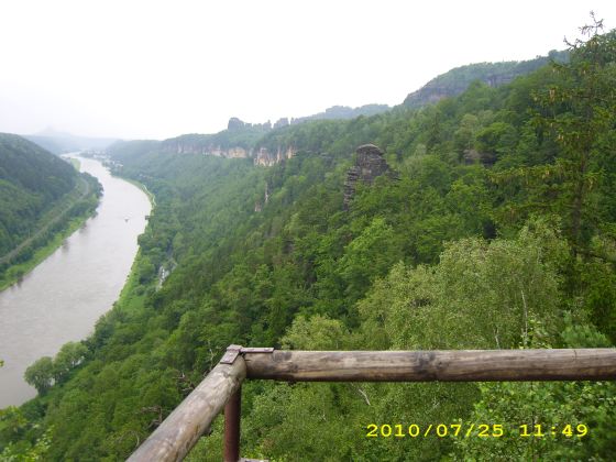 Eine weitere Aufstiegsmöglichkeit von Schmilka aus zu den Schrammsteinen führt an der "Kleinen Bastei" vorbei, von der man einen schönen Blick ins Elbtal und auf die Schrammsteinkette hat. Bei diesem Aufstieg kann man auch Richtung