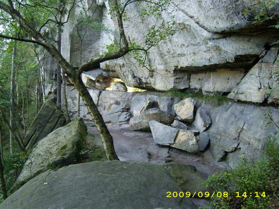 zur Idagrotte am Frienstein. Diese Stelle wird auch als "Vorderes Raubschloss" bezeichnet und wird wegen des schönen Blicks über den "Großen Zschand" gern als Rastplatz genutzt.