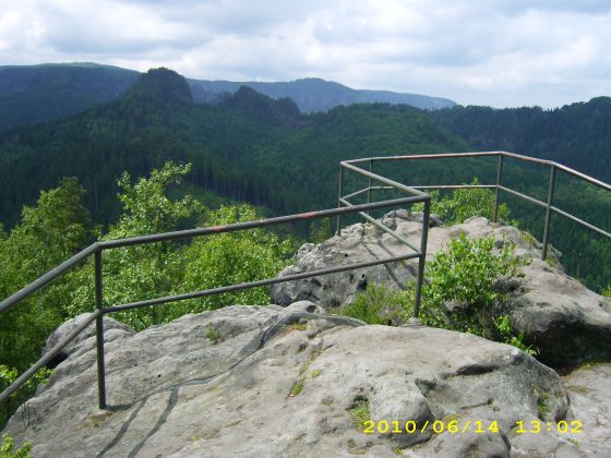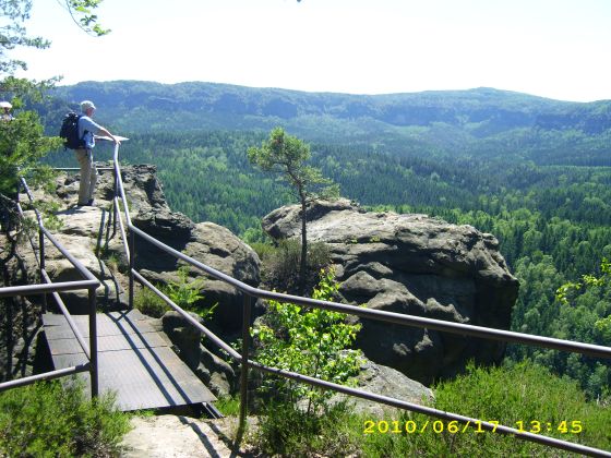 Goldsteinaussicht, die einen schönen Blick über die Richterschlüchte auf die gegenüber liegenden Felswände ermöglicht.