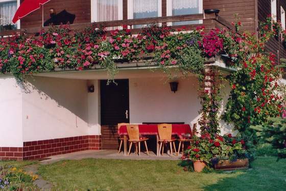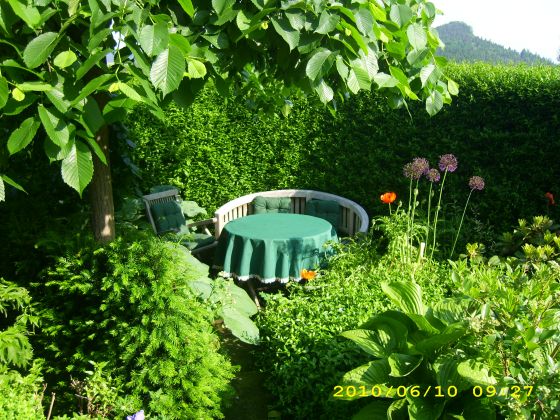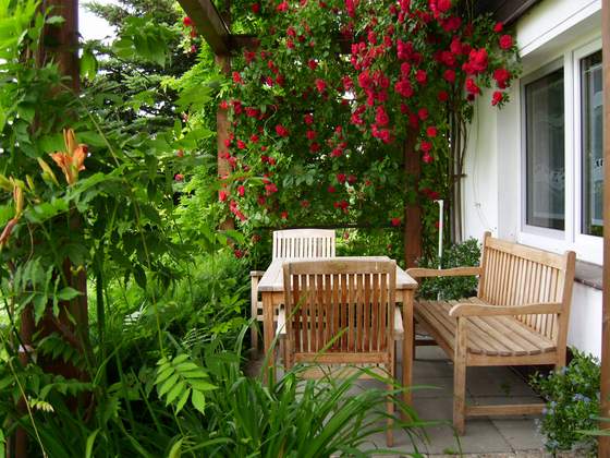 Außerhalb der Ferienwohnung im Garten kannn man von Mitte April bis Anfang September unter