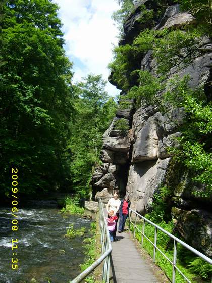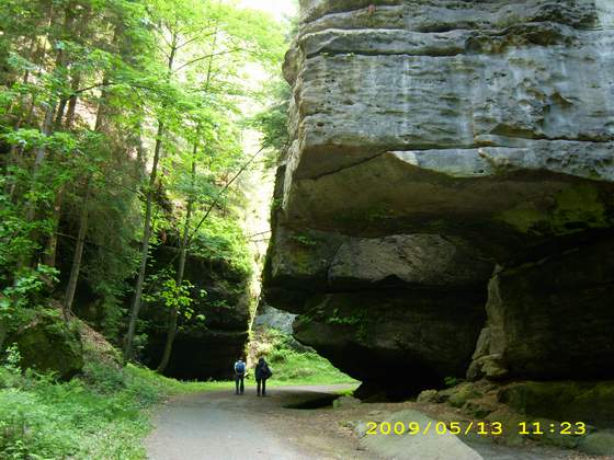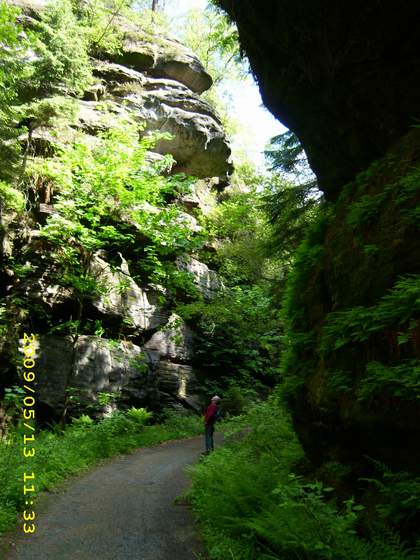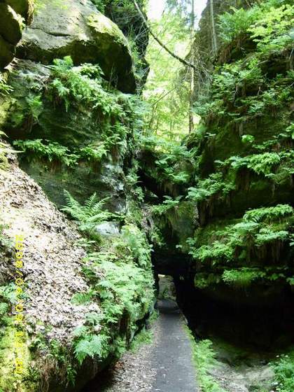 passierbar. Schon hier ist man von den steilen Sandsteinwänden umgeben. Im Liebethaler Grund